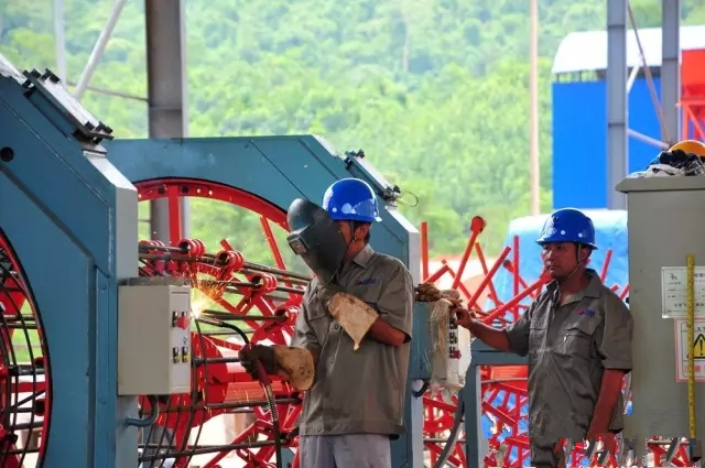 中國電建員工在中老鐵路四、五標段的車間里加工隧道、橋梁建設材料。