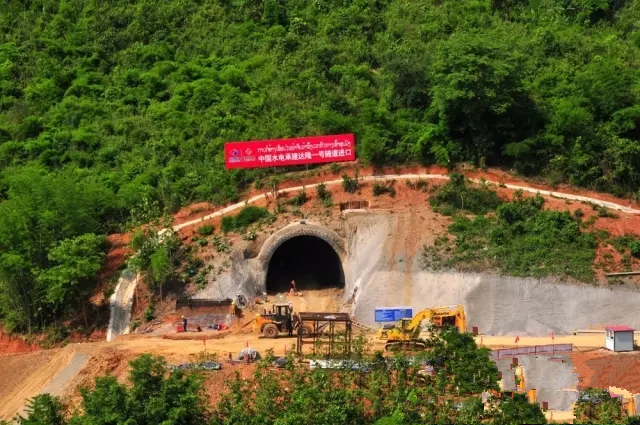 中國電建旗下的中國水利水電第三工程局有限公司在老撾北部瑯勃拉邦省山林里建設中老鐵路隧道。